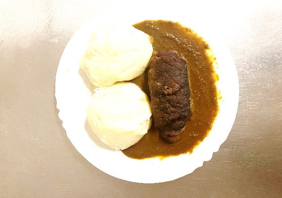 … und beides in Kombination, Rinderrouladen und Banku auf einem Teller serviert: